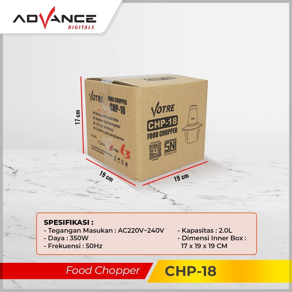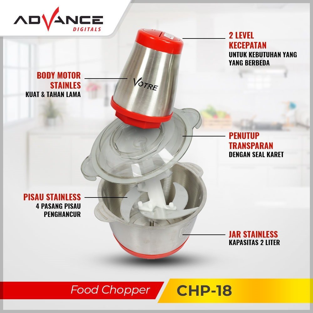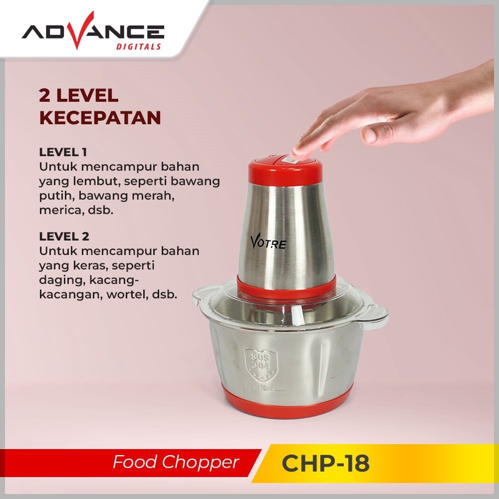 Advance CHP-18 Penggiling daging sayur buah-buah meat Chopper ukuran Besar 1,8L Food Grade