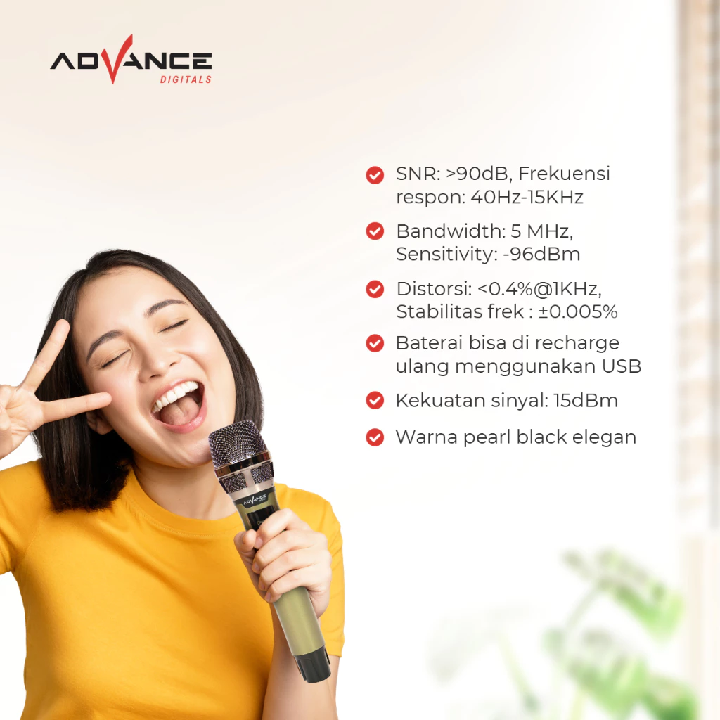 Advance Mic Professional Wireless Microphone Single MIC-102 Mic Vocal untuk karoke