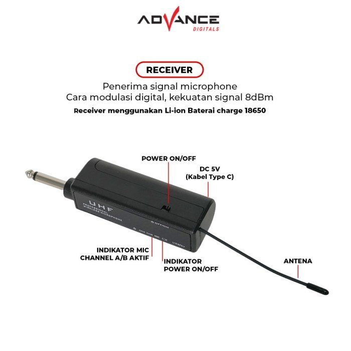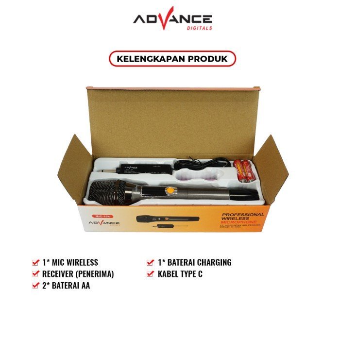Advance Mic Professional Wireless Microphone Single MIC-104 Mic Vocal untuk karoke