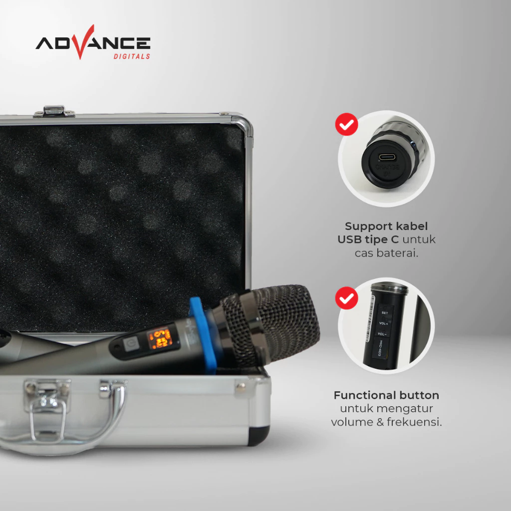 Fitur : 2 Mic Wireless, Noice Reduction,