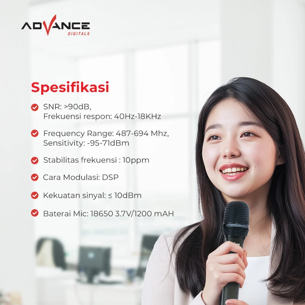 Fitur : 2 Mic Wireless, Noice Reduction,