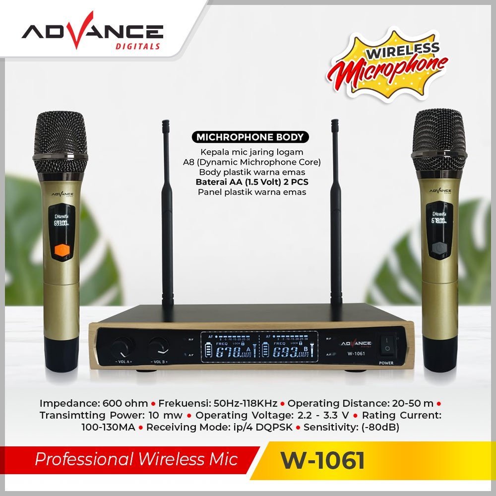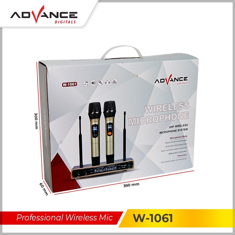 ADVANCE W1062 Dual Mic Wireless Profesional Microphone + amplifier mic wireless
