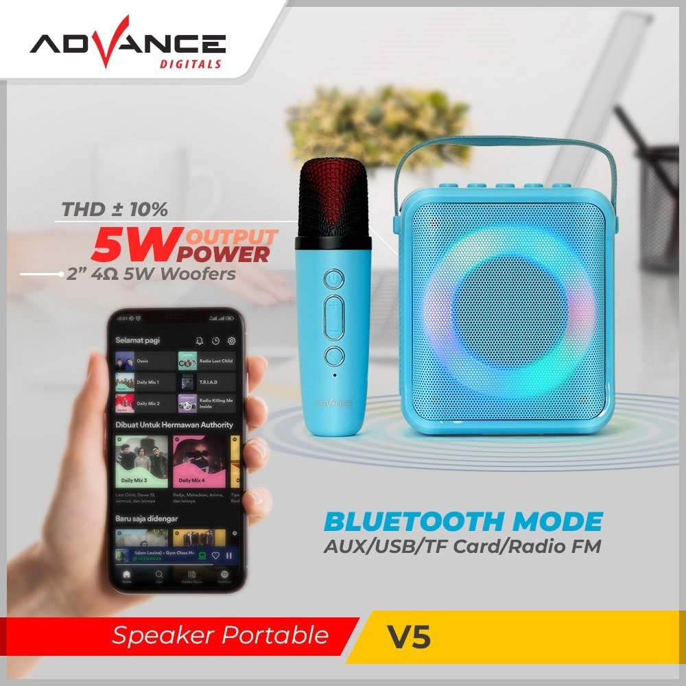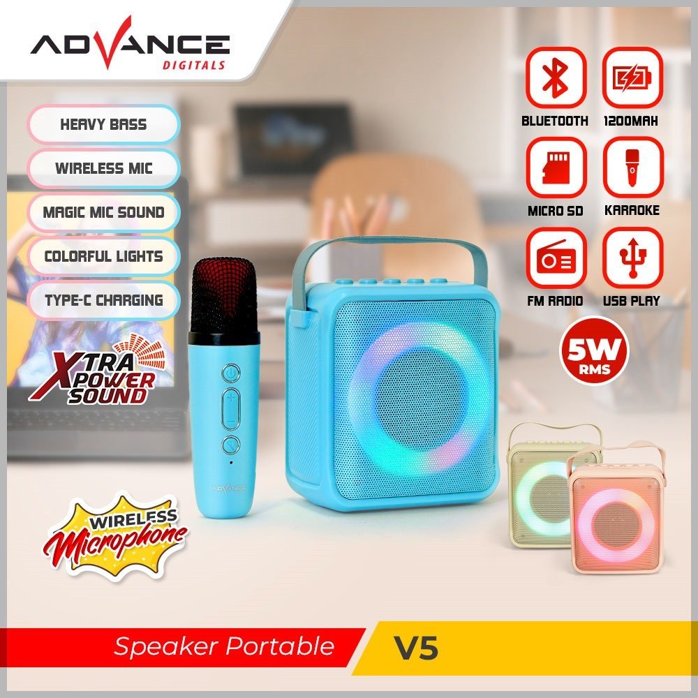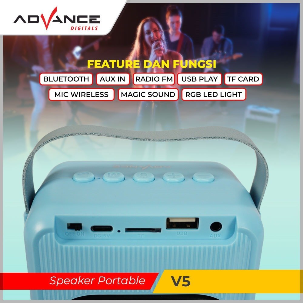 Advance Speaker Portable V5 / V-5 RGB Light Bluetooth AUX in Radio USB Magic Sound + Mic Wireless