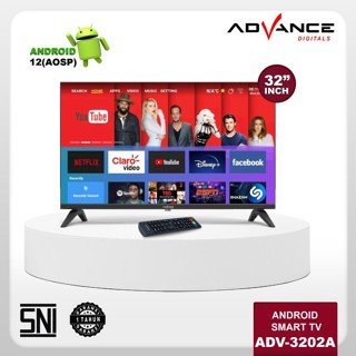 Advance ADV-3202A Android TV Smart TV HD 32" WiFi LAN TV Digital DVB-T2/C merupakan televisi pintar terbaru dari Advance dengan layar LCD/LED berukuran 32 inci dan resolusi HD yang memberikan gambar berkualitas tinggi. Desain layarnya yang framless membuat tampilan televisi ini sangat elegan dan modern.