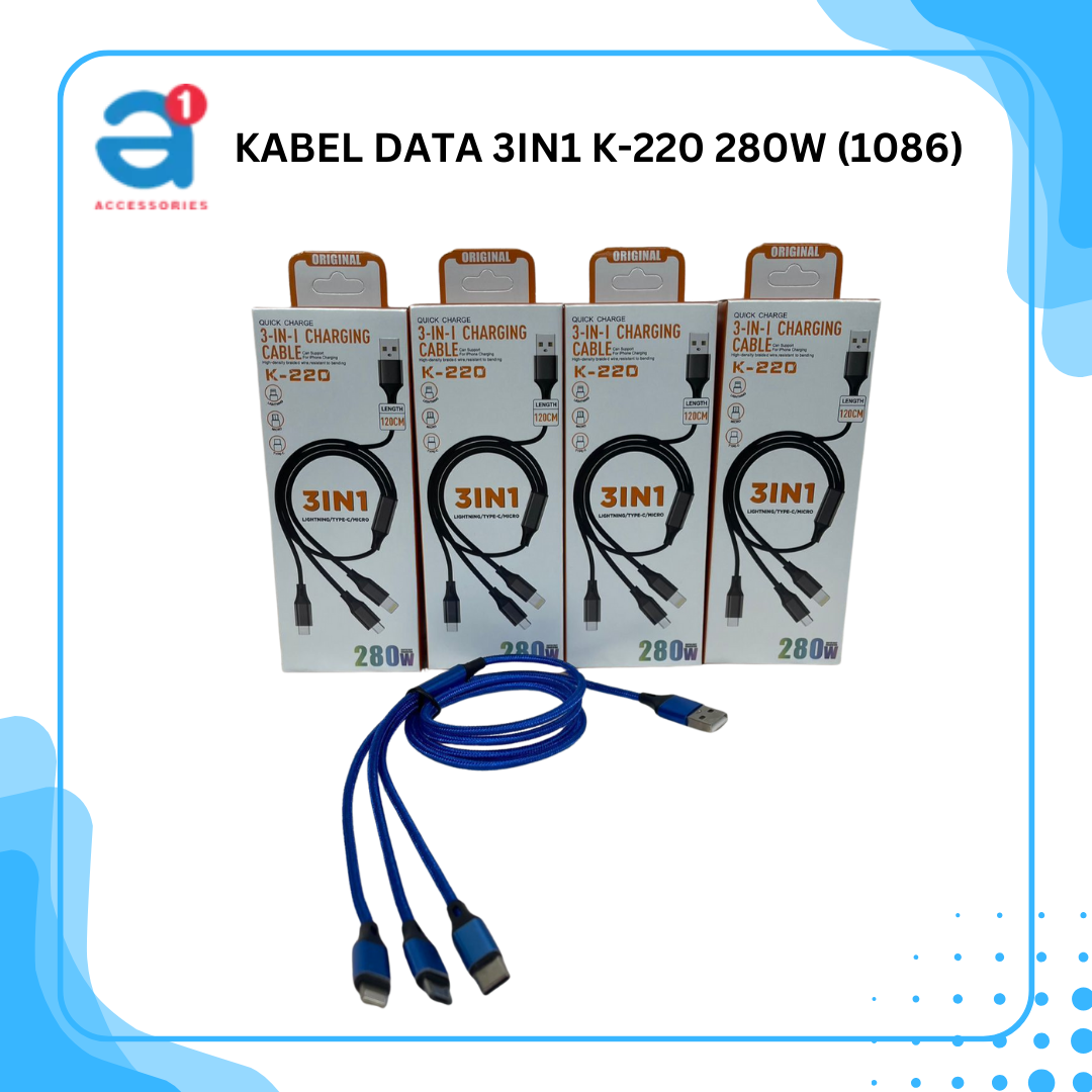 KABEL DATA 3in1 K-220 1.2meter + Pack Dus,280w (1086)
