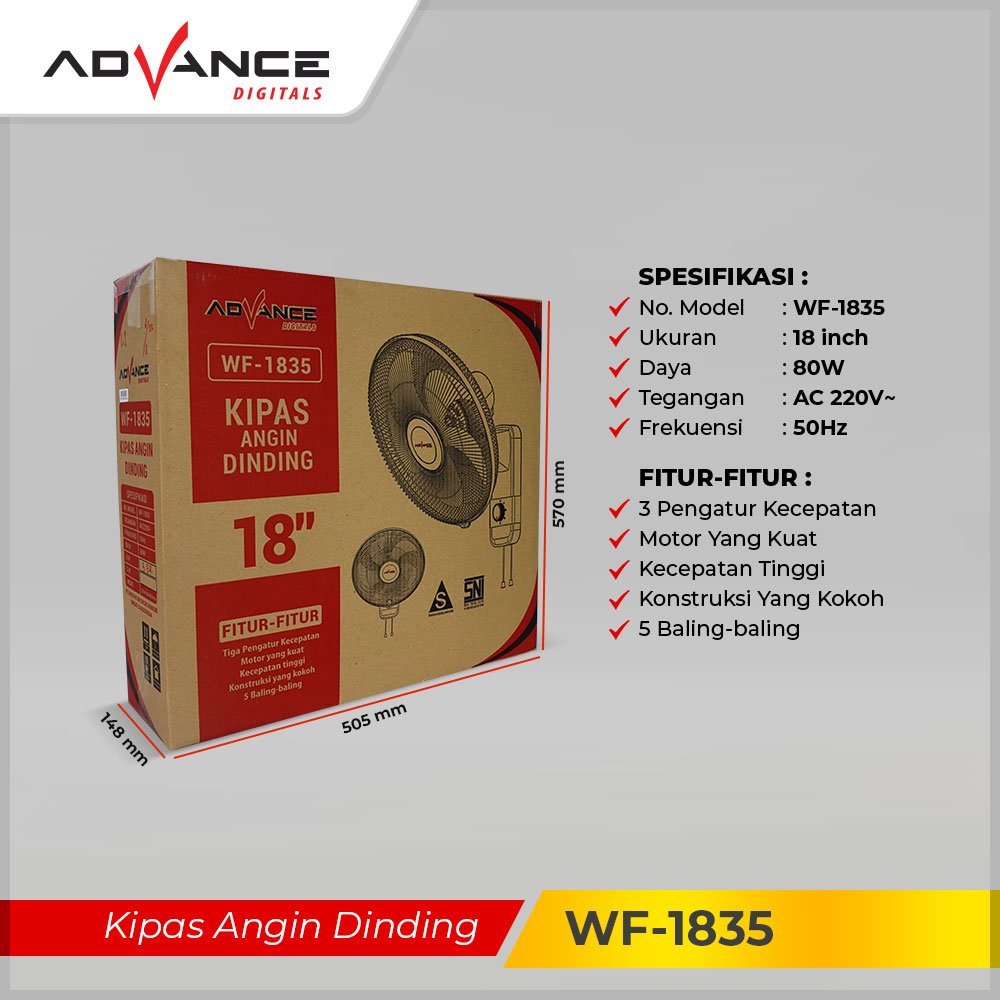 Advance WF-1835 kipas Angin Dinding Wall Fan Besi Ukuran Besar 18 inch Garansi resmi 1 tahun