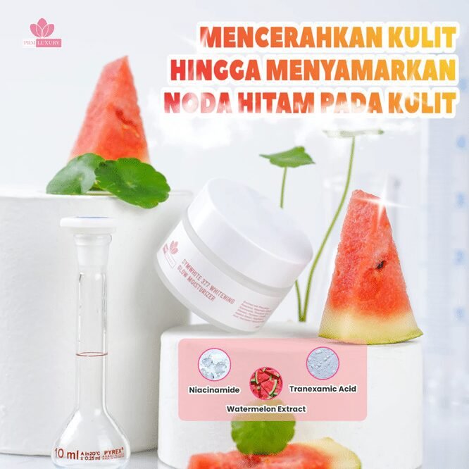 WATERMELON EXTRACT DAN RESORCINOL sebagai antioksidan yang dapat membantu mencegah tanda-tanda penuaan dini.