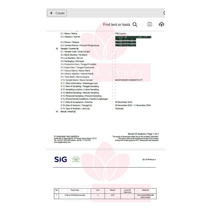 PRM Luxury Symwhite 377 Whitening Glow Moisturizer 30g