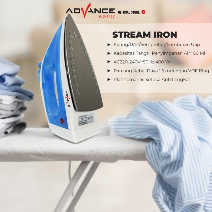 Dengan Model Yang elegant dan varian warna yang beragam, menjadikan advance setrika ini menjadi lebih menarik digunakan daripada setrika konvensional lainnya.