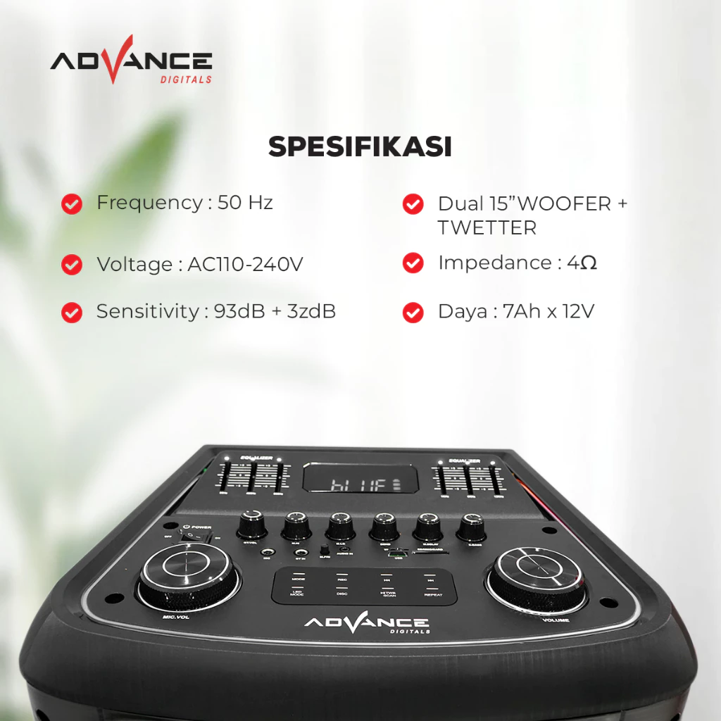 Fitur : Bluetooth, USB, TF/SD Card, AUX,