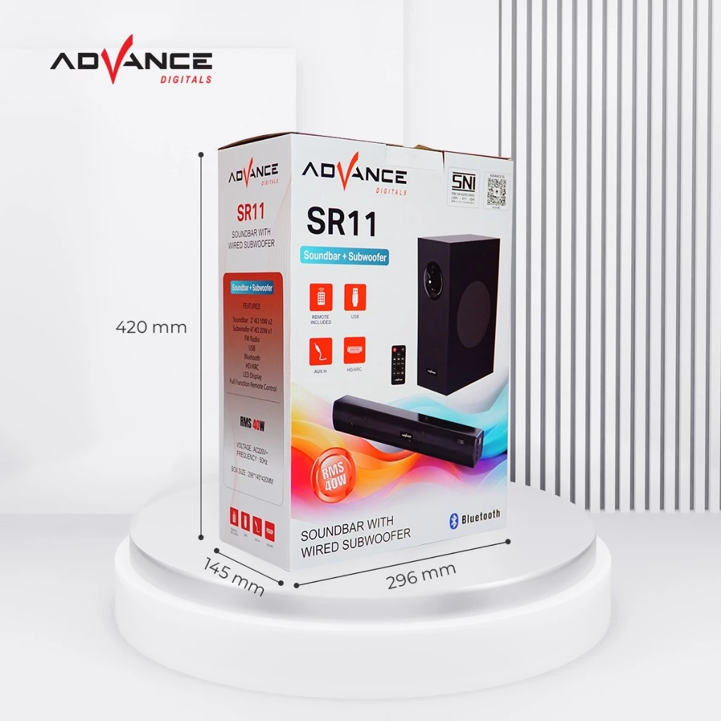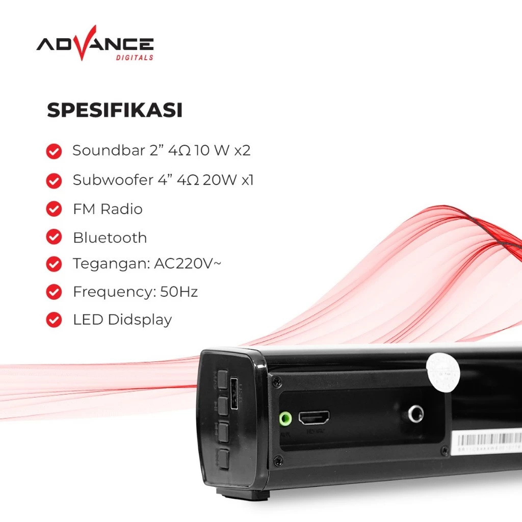 Fitur : Bluetooth, USB, HD/ARC, Remote